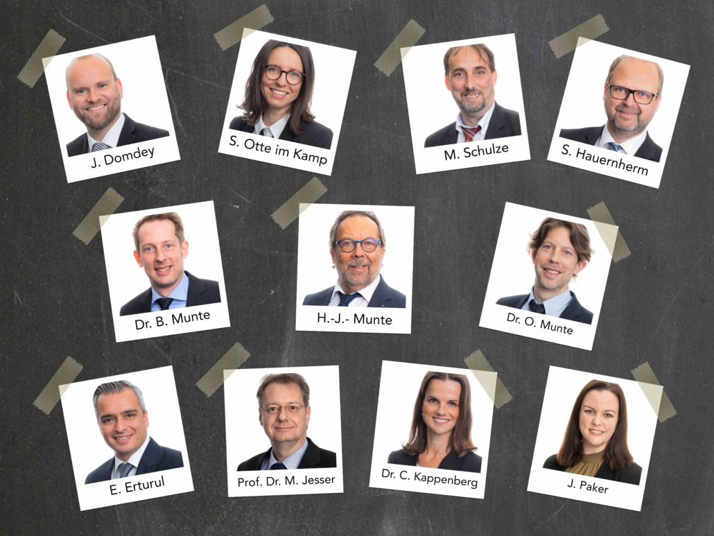 Seit fast 50 Jahren stehen wir als familiengeführte Kanzlei für Kompetenz, Verlässlichkeit und persönliche Betreuung. Gegründet von Rechtsanwalt und Notar a. D. Hans-Joachim Munte, wird unser Anspruch bis heute von einem engagierten Team aus 12 erfahrenen Rechtsanwälten/Rechtsanwältinnen und zwei Notaren zusammen mit einem Team aus rund 30 Mitarbeitern und Mitarbeiterinnen fortgeführt.